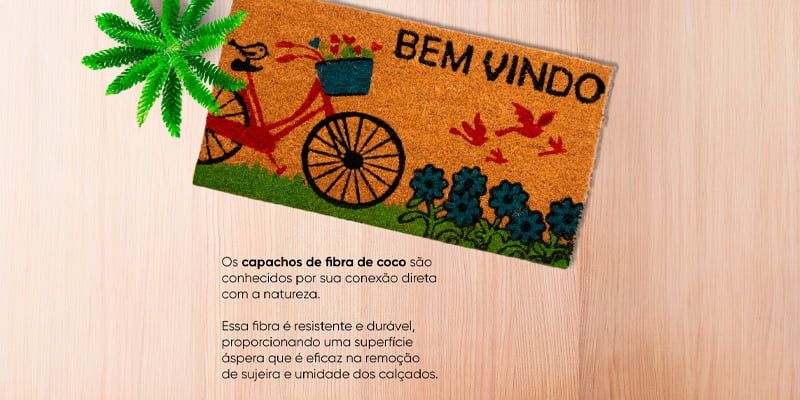 Esse capacho vai além de simplesmente limpar os pés. É a união perfeita de sustentabilidade com qualidade top. Feito com fibras naturais escolhidas a dedo, tem 10 mm de pura resistência e conta com mais de 600 fios por centímetro quadrado. Isso significa mais eficiência e vida longa ao produto. Com esse aqui, você tem a certeza de estar levando o melhor para a sua casa!