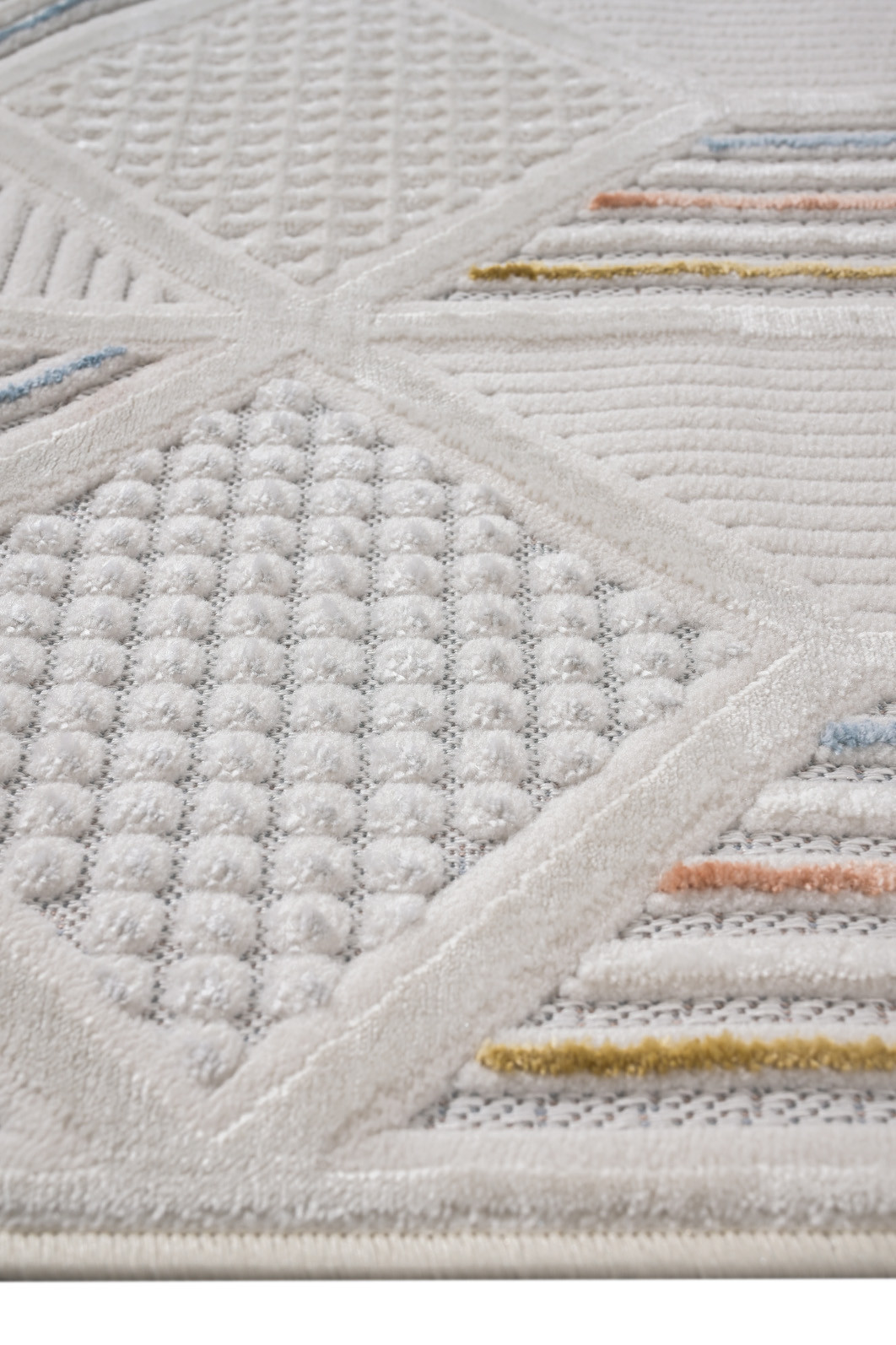 • Cores: azul, terracota, caramelo, amarelo-mostarda, base off-white