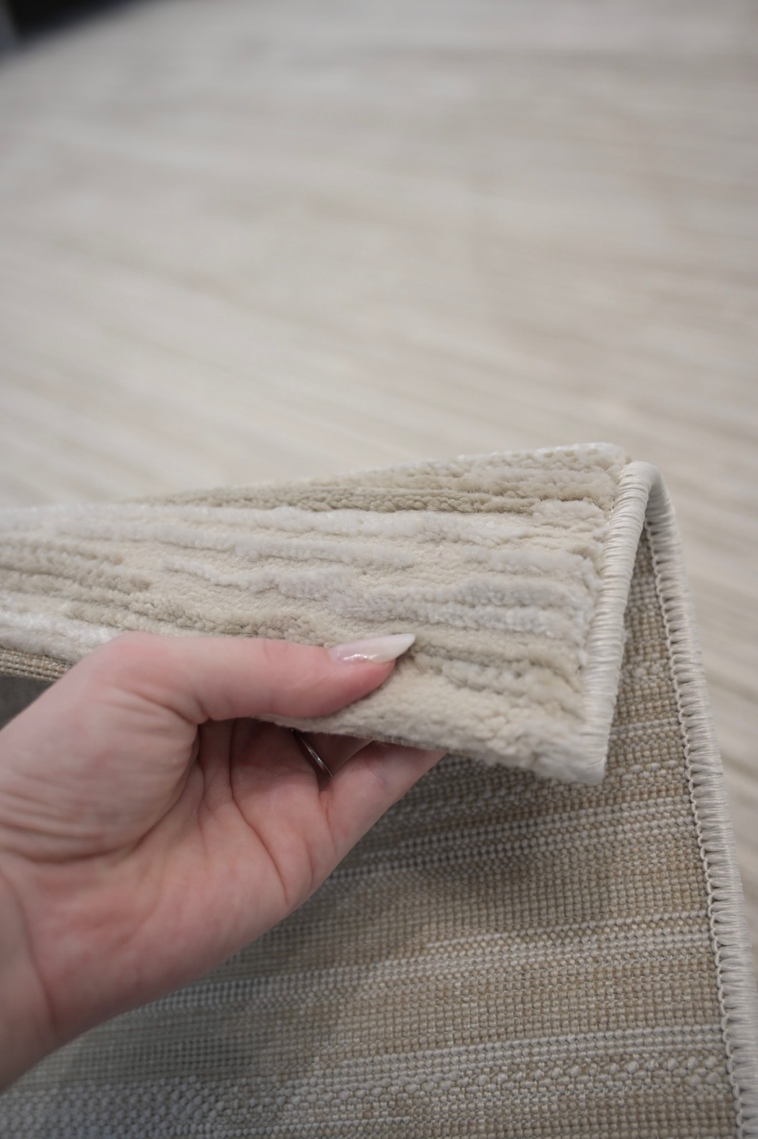 Acabamento: Debrum nas laterais, Barra virada nas pontas